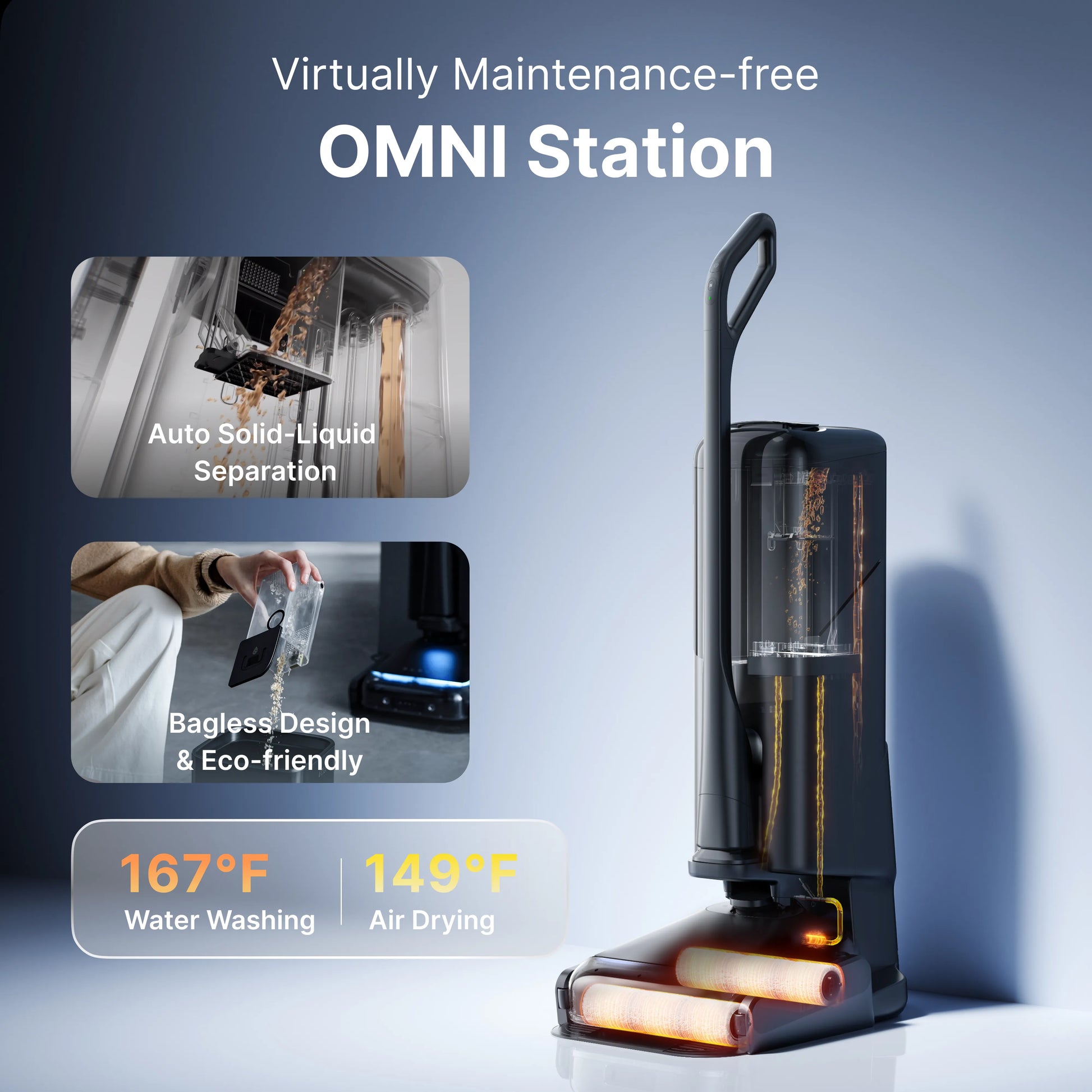 No dust bags are required—simply empty the OMNI Station’s dry waste bin when it’s full and save approximately $120 on 30 dust bags over three years. The station’s drying system prevents odor and mold, keeping the bin fresh and clean at all times.