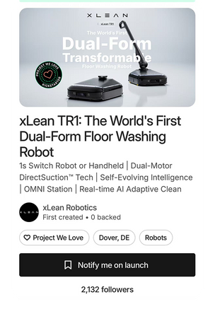 Introducing Hunting Mode. xLean TR1 is the first cleaning robot designed to actively search for messes. xLean TR1 autonomously scans floors, identifies messes, makes human-like cleaning decisions where needed, then delivers the targeted cleaning. This unique capability improves overall efficiency while reducing energy consumption.